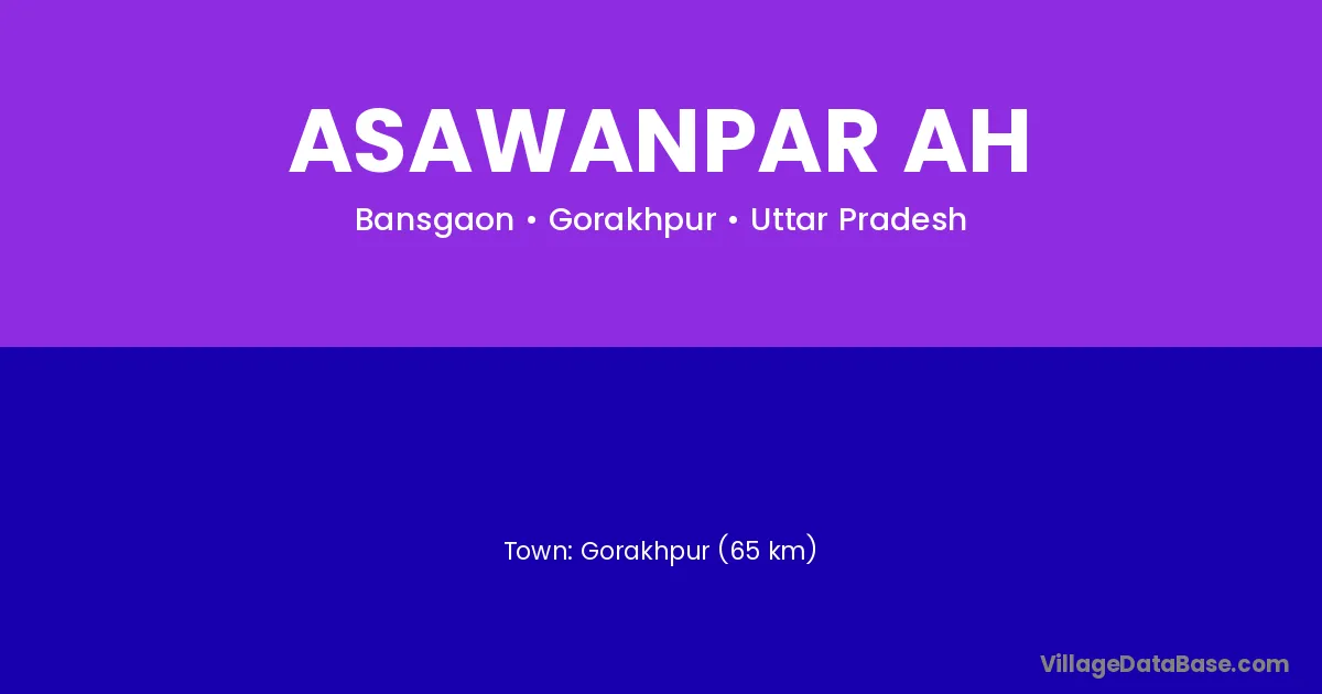 Gorakhpur (65 km) is the nearest town to Asawanpar Ah village for major economic activities and is located approximately 65 km away.