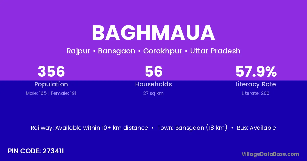 Bansgaon (18 km) is the nearest town to Baghmaua village for major economic activities and is located approximately 18 km away.