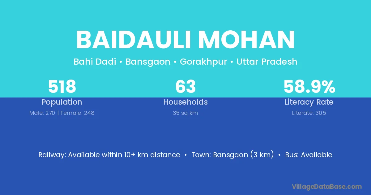 Bansgaon (3 km) is the nearest town to Baidauli Mohan village for major economic activities and is located approximately 3 km away.