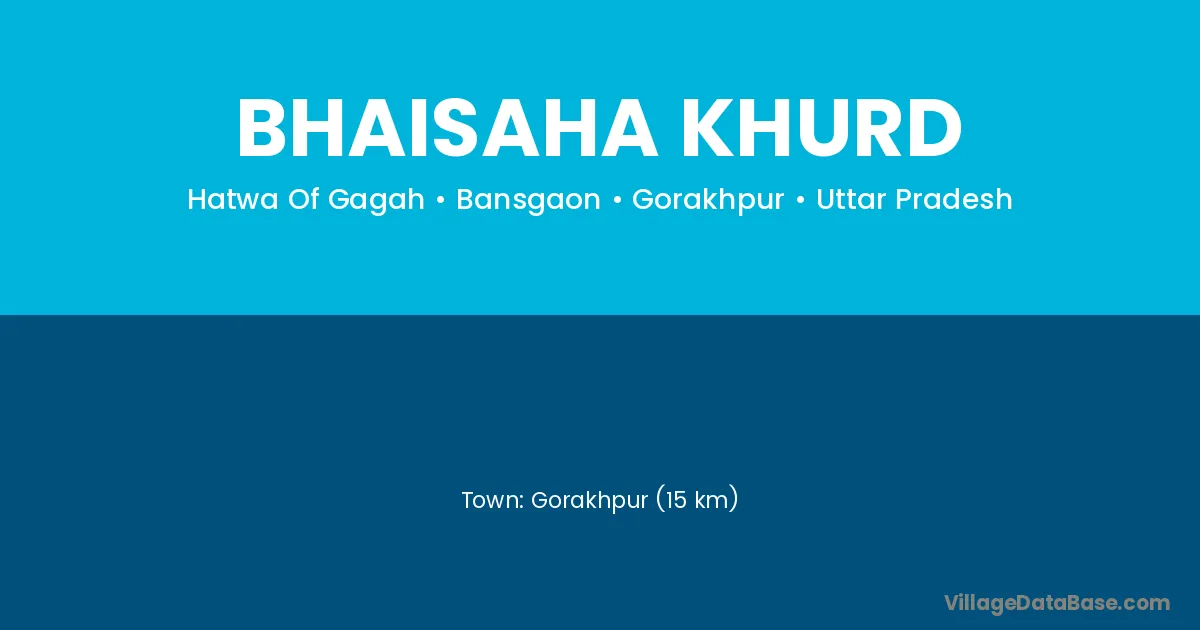 Gorakhpur (15 km) is the nearest town to Bhaisaha Khurd village for major economic activities and is located approximately 15 km away.