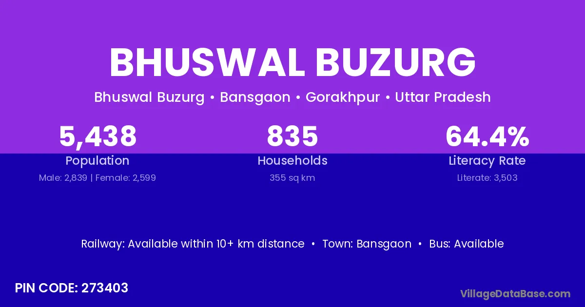 Bansgaon is the nearest town to Bhuswal Buzurg village for major economic activities