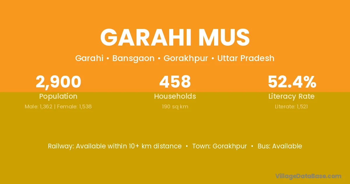 Garahi Mus village has a total population of 2,900 people, of which 1,362 are males and 1,538 are females.
