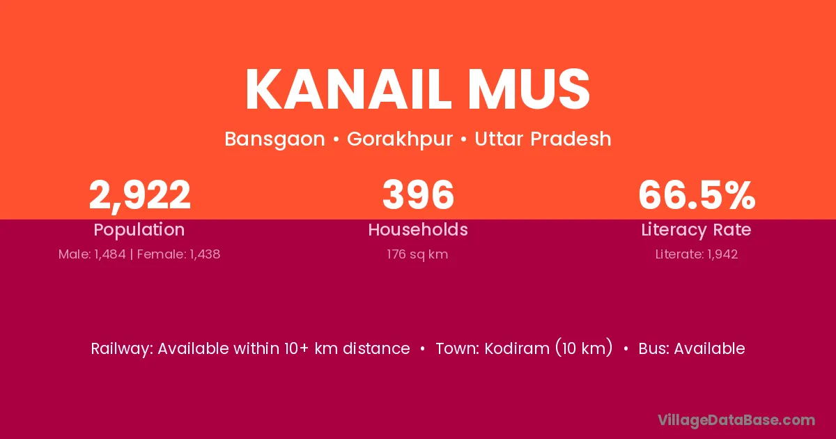 Kanail Mus village has a total population of 2,922 people, of which 1,484 are males and 1,438 are females.