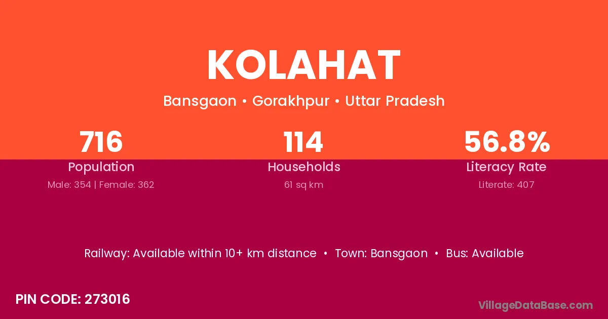 According to Census 2011 information, the village code of Kolahat village is 273016.