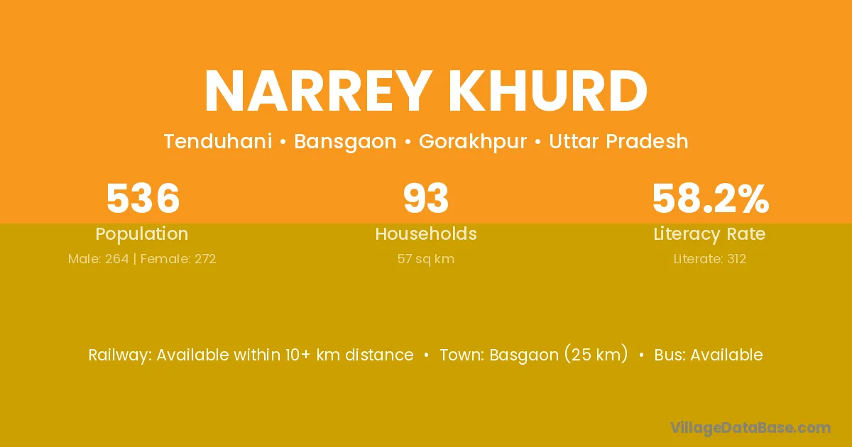 Narrey Khurd village has a total population of 536 people, of which 264 are males and 272 are females.