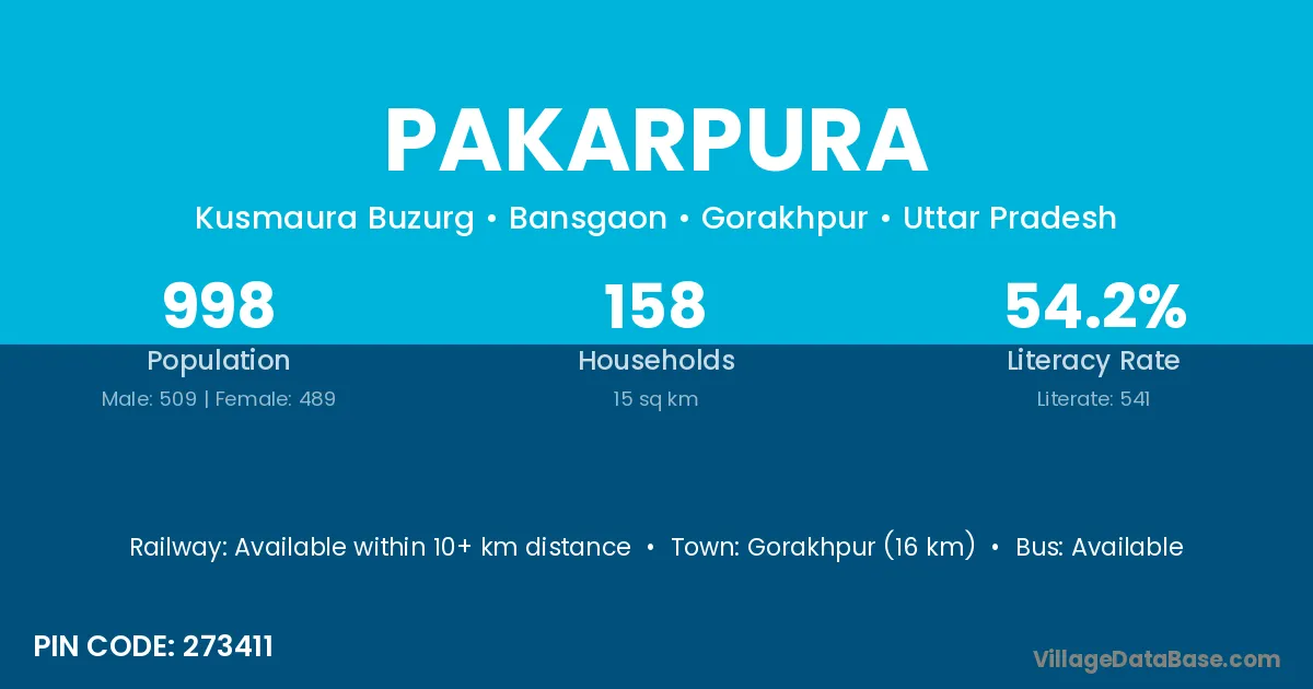 Pakarpura village has a total population of 998 people, of which 509 are males and 489 are females.