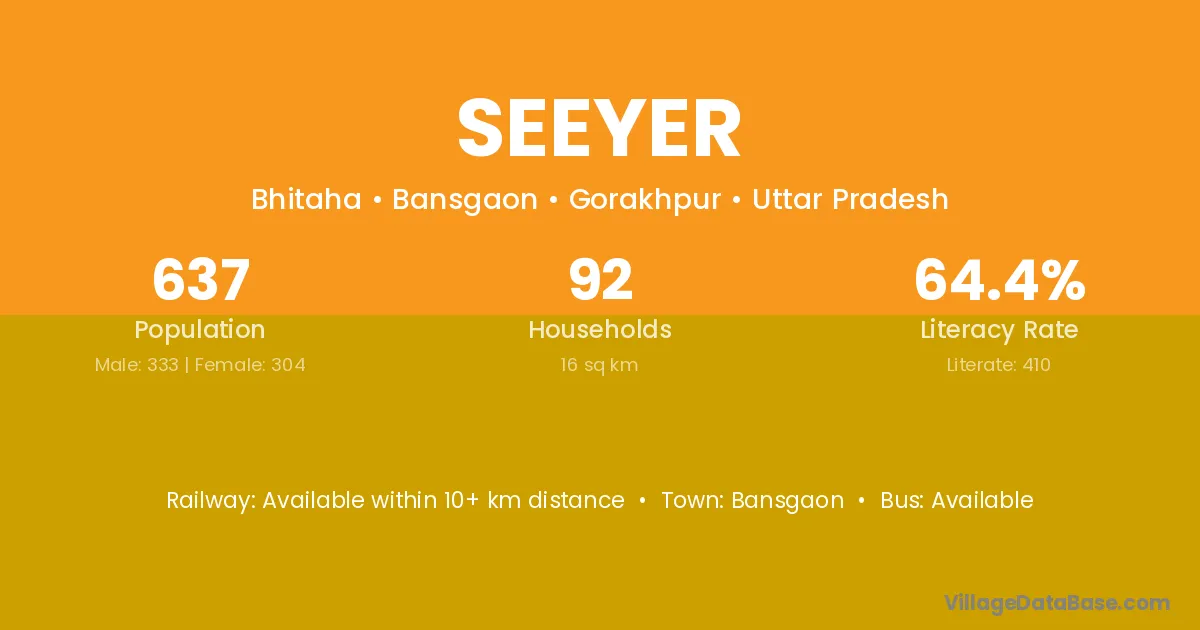 Bansgaon is the nearest town to Seeyer village for major economic activities