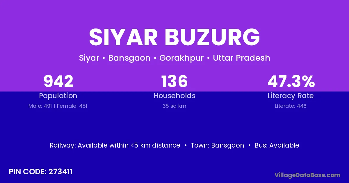 Bansgaon is the nearest town to Siyar Buzurg village for major economic activities