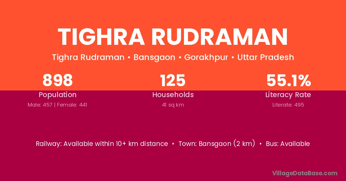 Tighra Rudraman village has a total population of 898 people, of which 457 are males and 441 are females.