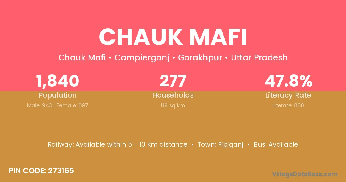 Chauk Mafi village has a total population of 1,840 people, of which 943 are males and 897 are females.
