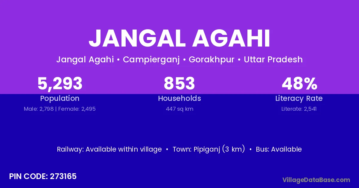 Pipiganj (3 km) is the nearest town to Jangal Agahi village for major economic activities and is located approximately 3 km away.
