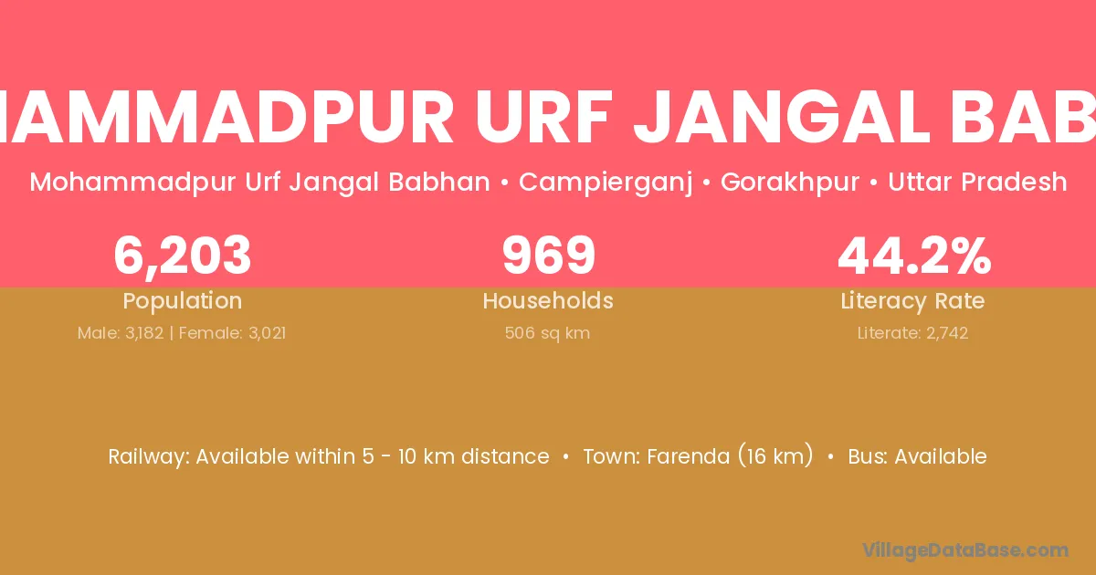 Mohammadpur Urf Jangal Babhan village has a total population of 6,203 people, of which 3,182 are males and 3,021 are females.