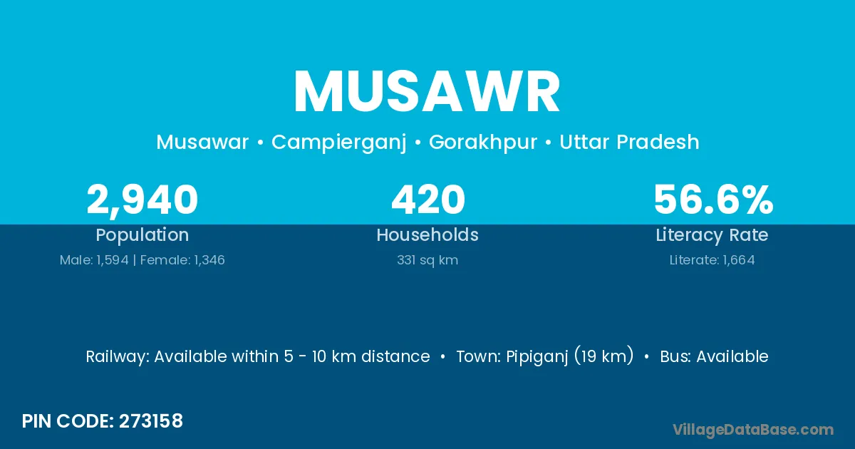 Pipiganj (19 km) is the nearest town to Musawr village for major economic activities and is located approximately 19 km away.