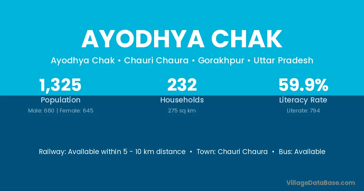 Ayodhya Chak village has a total population of 1,325 people, of which 680 are males and 645 are females.