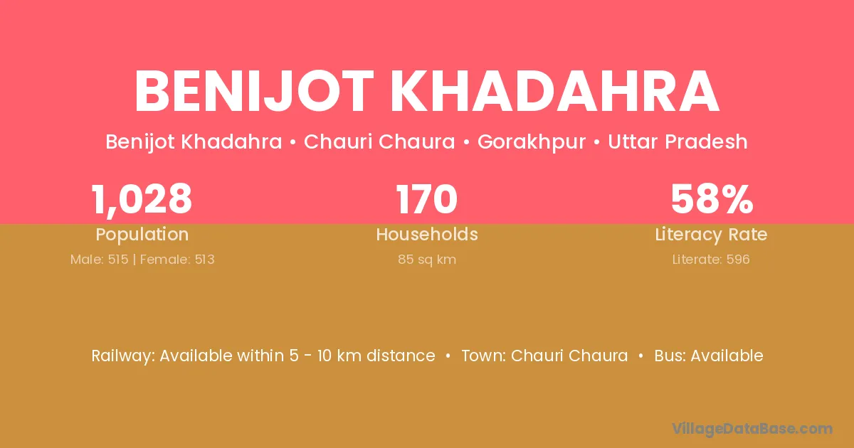 Benijot Khadahra village has a total population of 1,028 people, of which 515 are males and 513 are females.