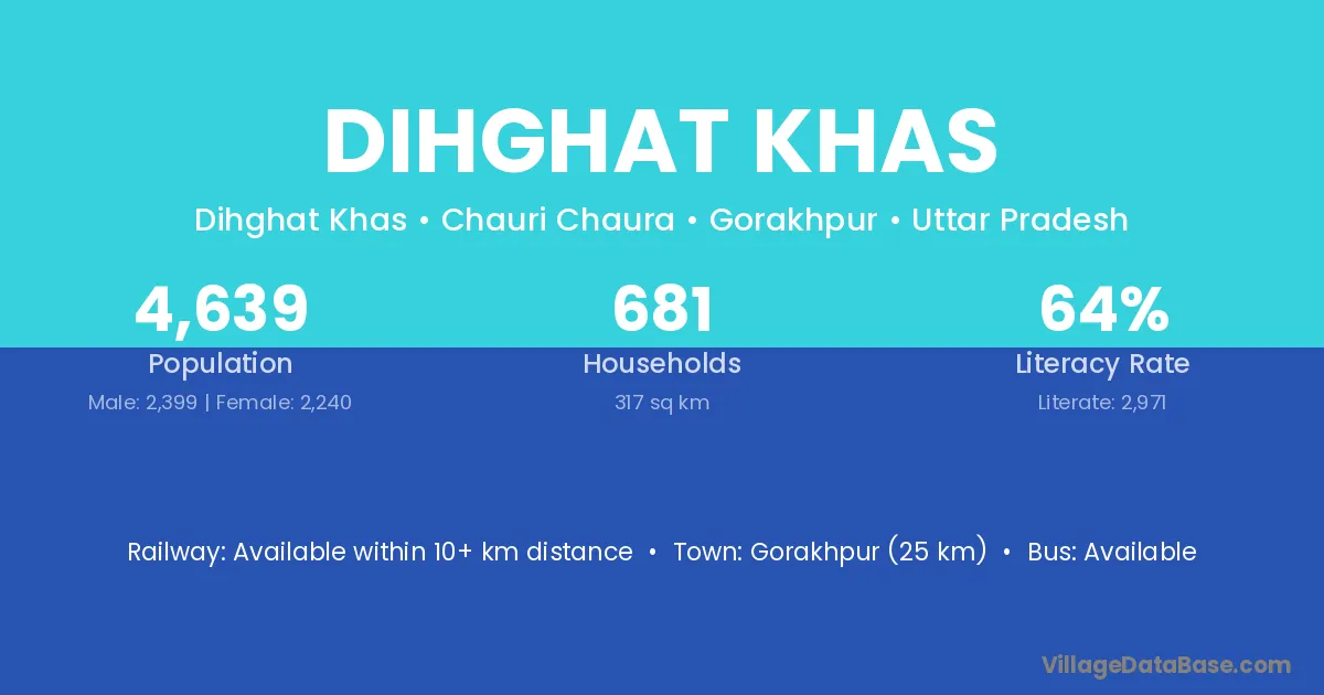 Gorakhpur (25 km) is the nearest town to Dihghat Khas village for major economic activities and is located approximately 25 km away.
