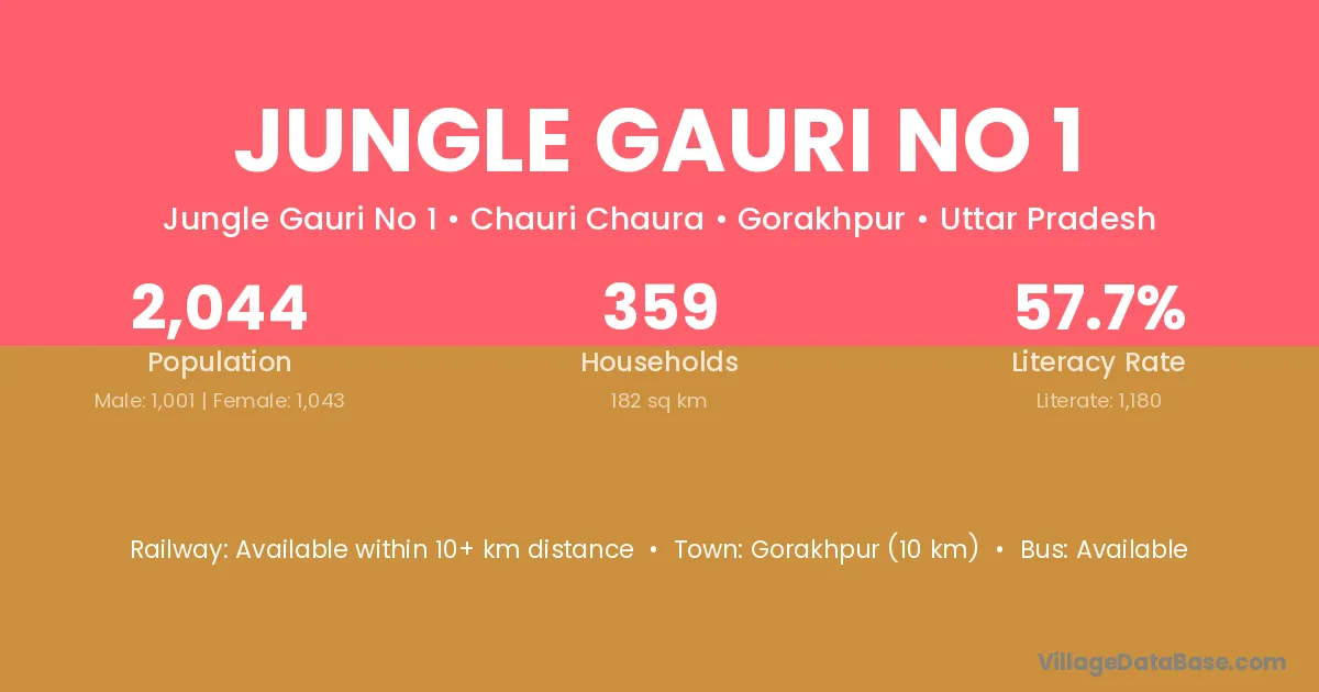 Jungle Gauri No 1 village has a total population of 2,044 people, of which 1,001 are males and 1,043 are females.