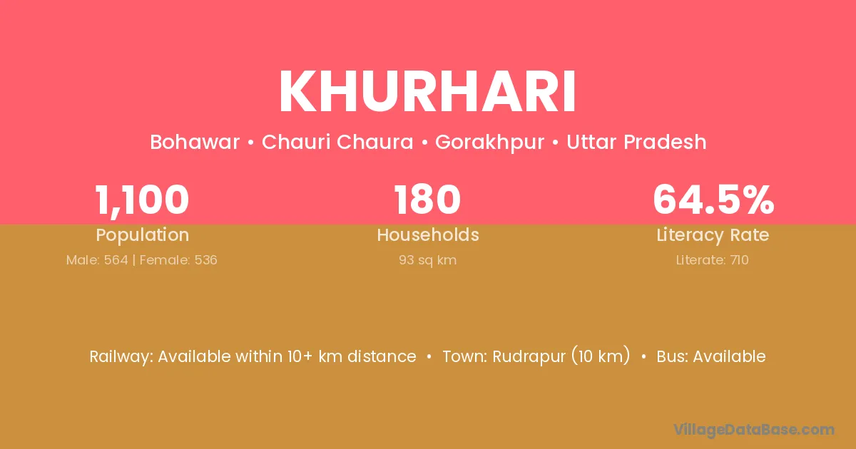Rudrapur (10 km) is the nearest town to Khurhari village for major economic activities and is located approximately 10 km away.