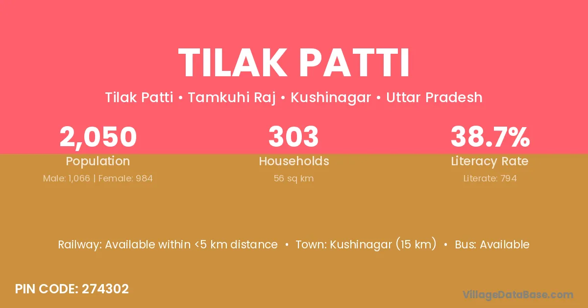 Gorakhpur (25 km) is the nearest town to Tilak Patti village for major economic activities and is located approximately 25 km away.