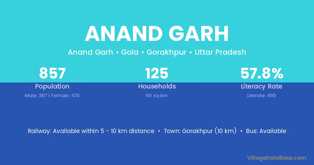 Gorakhpur (10 km) is the nearest town to Anand Garh village for major economic activities and is located approximately 10 km away.