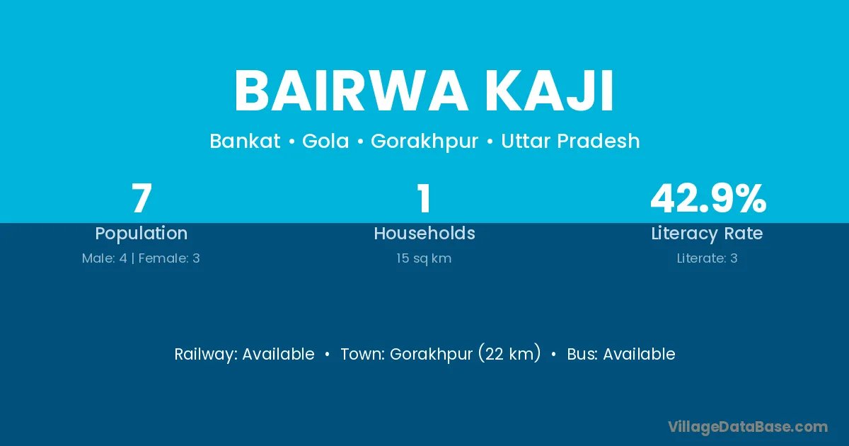 Gorakhpur (22 km) is the nearest town to Bairwa Kaji village for major economic activities and is located approximately 22 km away.