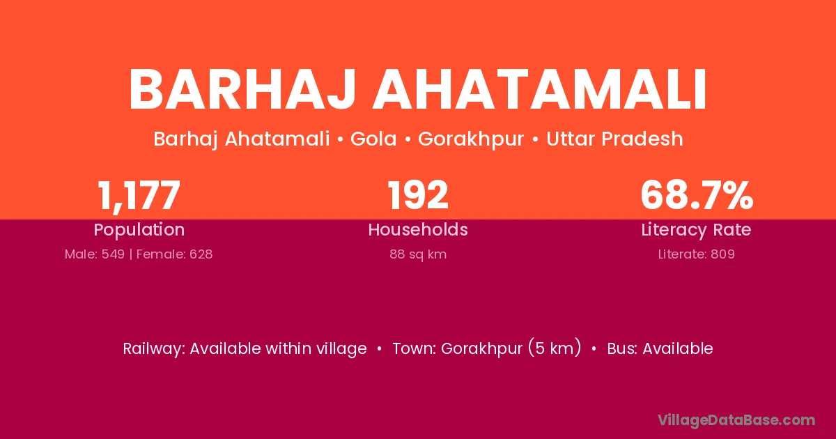Gorakhpur (5 km) is the nearest town to Barhaj Ahatamali village for major economic activities and is located approximately 5 km away.