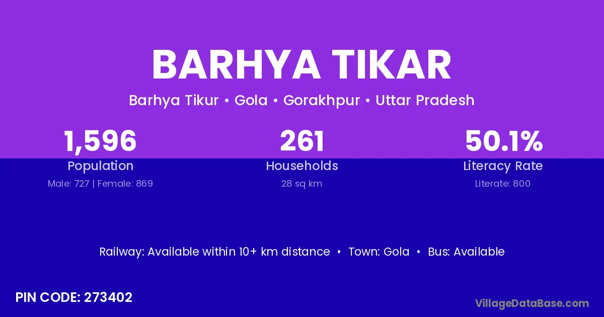 According to Census 2011 information, the village code of Barhya Tikar village is 273402.