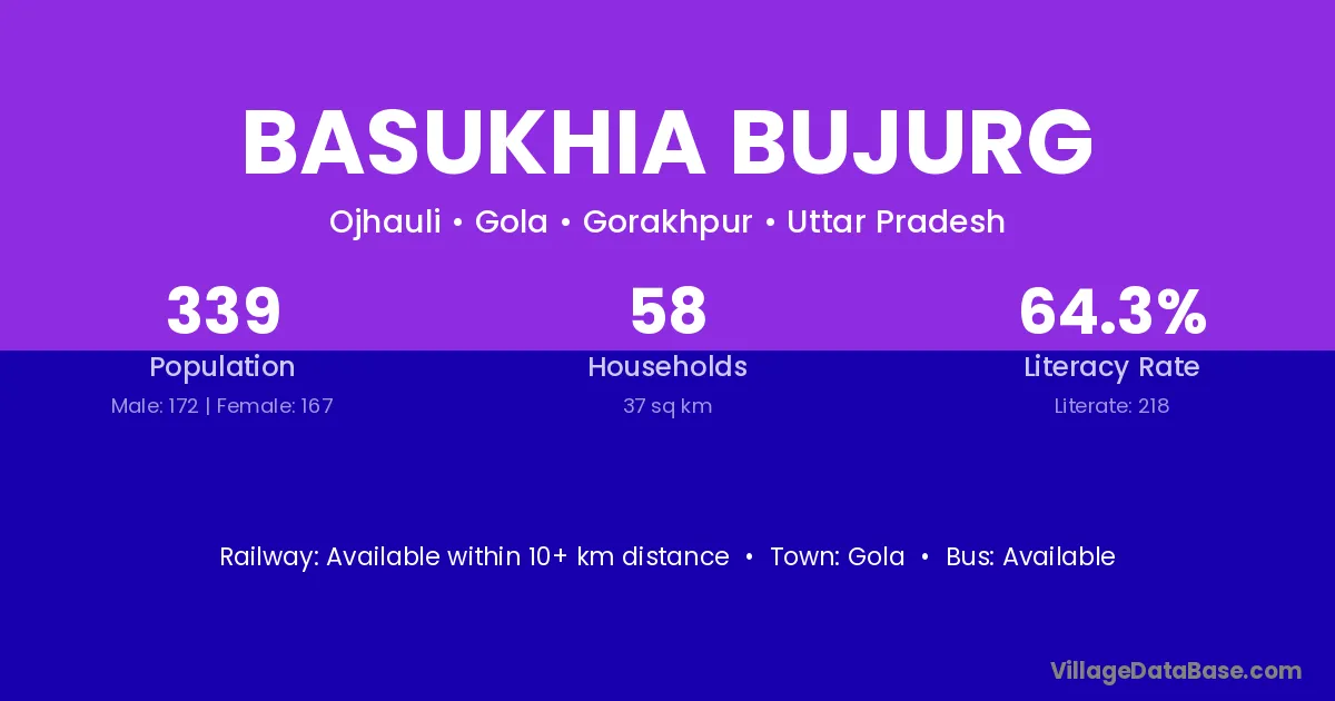 Basukhia Bujurg village has a total population of 339 people, of which 172 are males and 167 are females.