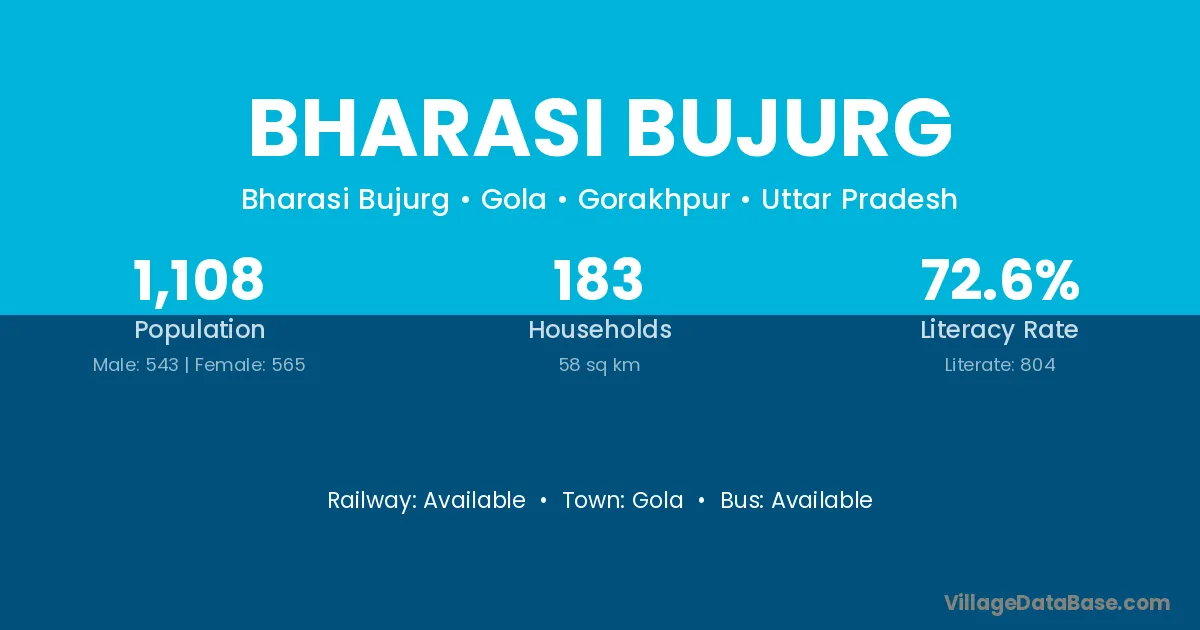 Bharasi Bujurg village has a total population of 1,108 people, of which 543 are males and 565 are females.
