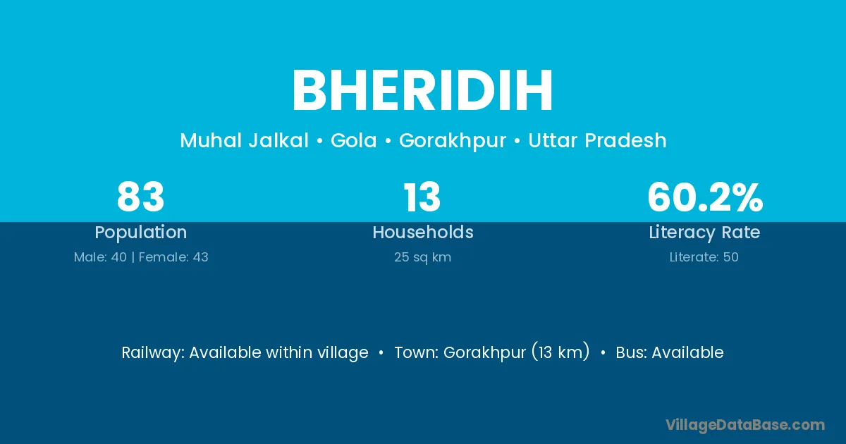 Gorakhpur (13 km) is the nearest town to Bheridih village for major economic activities and is located approximately 13 km away.