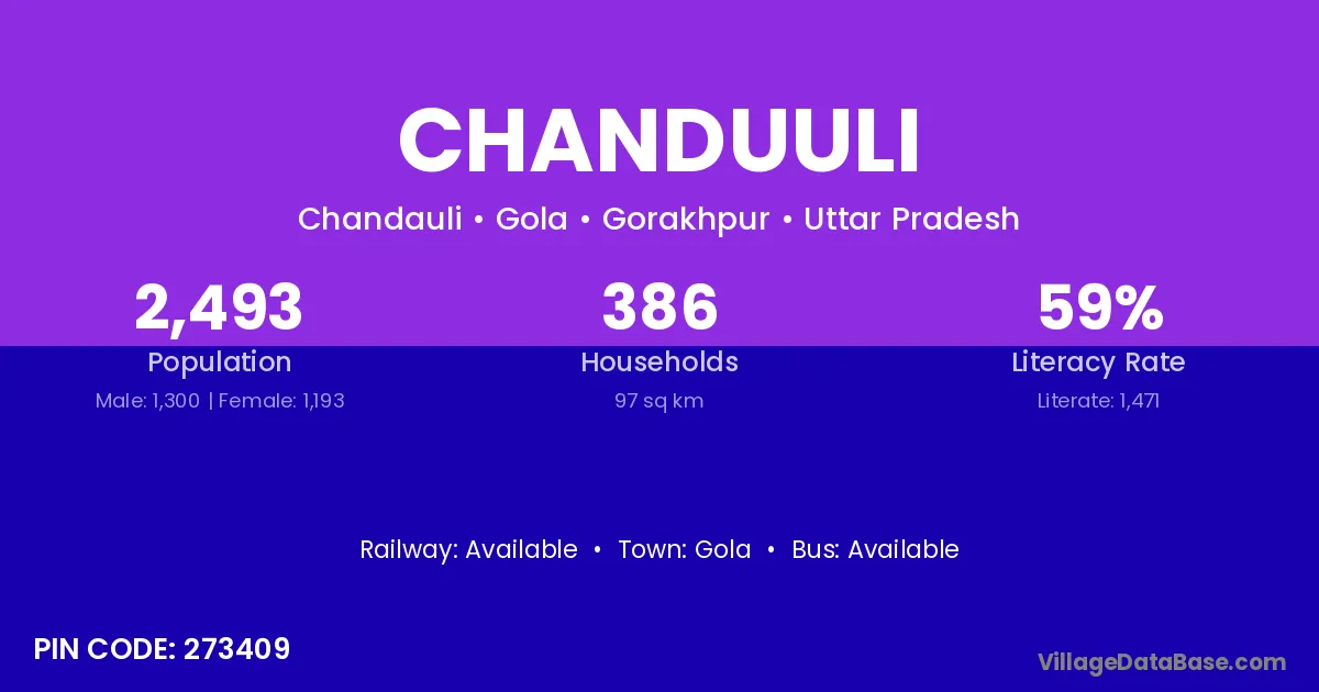 Chanduuli village has a total population of 2,493 people, of which 1,300 are males and 1,193 are females.