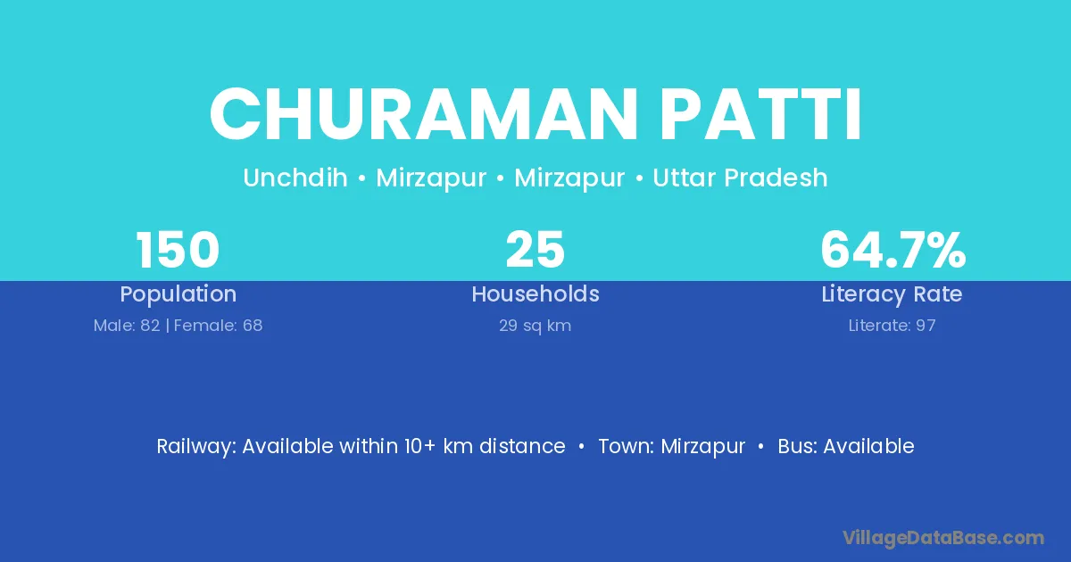 Badhaslganj (13 km) is the nearest town to Churaman Patti village for major economic activities and is located approximately 13 km away.