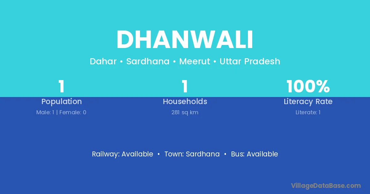 The literacy rate of Dhanwali village is 63.83%. Male literacy stands at 71.43% and female literacy at 57.69%.