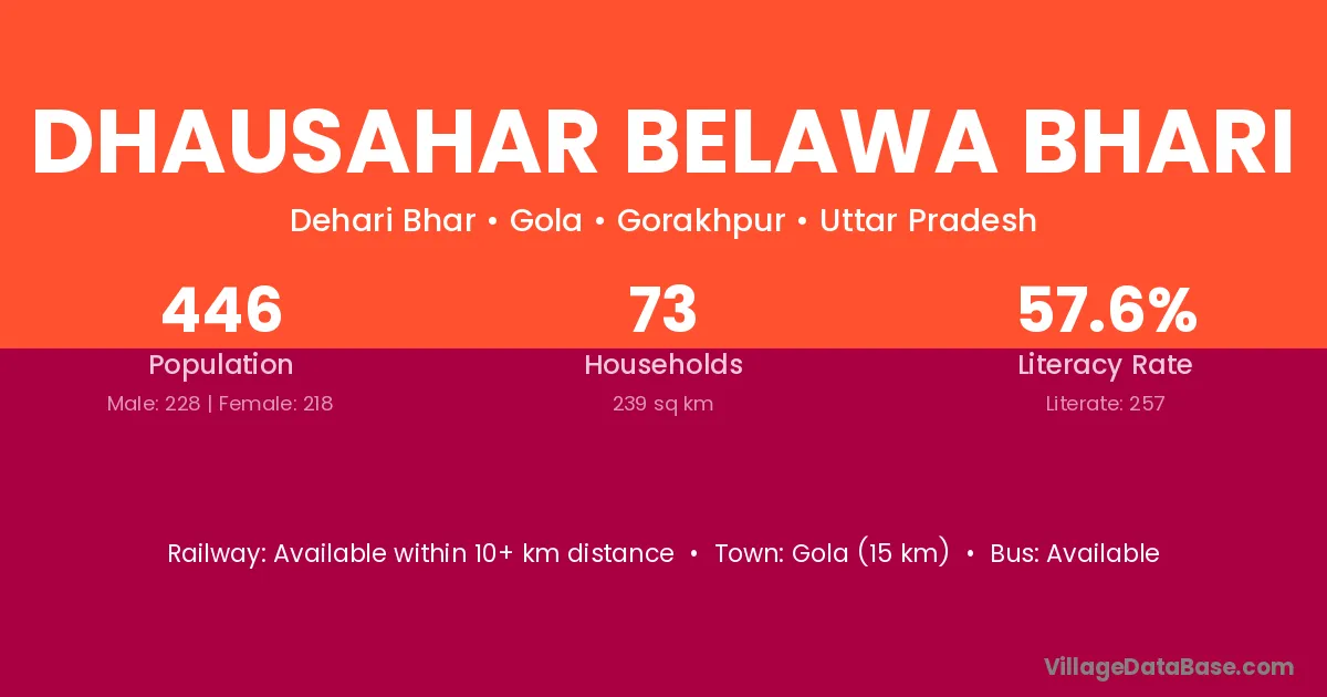 Gola (15 km) is the nearest town to Dhausahar Belawa Bhari village for major economic activities and is located approximately 15 km away.