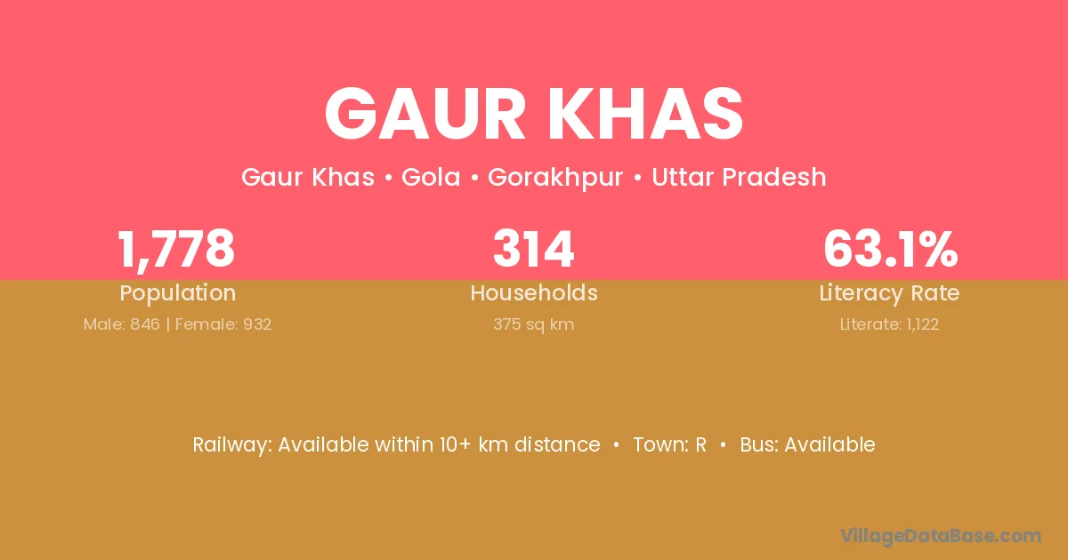 Gaur Khas village has a total population of 1,778 people, of which 846 are males and 932 are females.