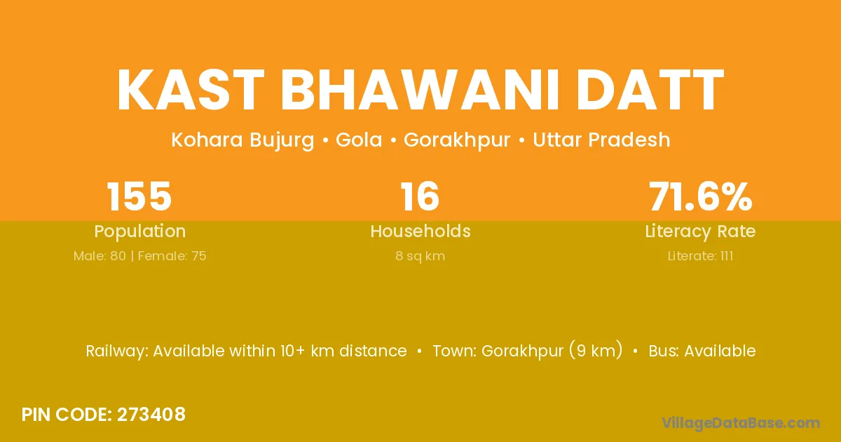 Gorakhpur (9 km) is the nearest town to Kast Bhawani Datt village for major economic activities and is located approximately 9 km away.