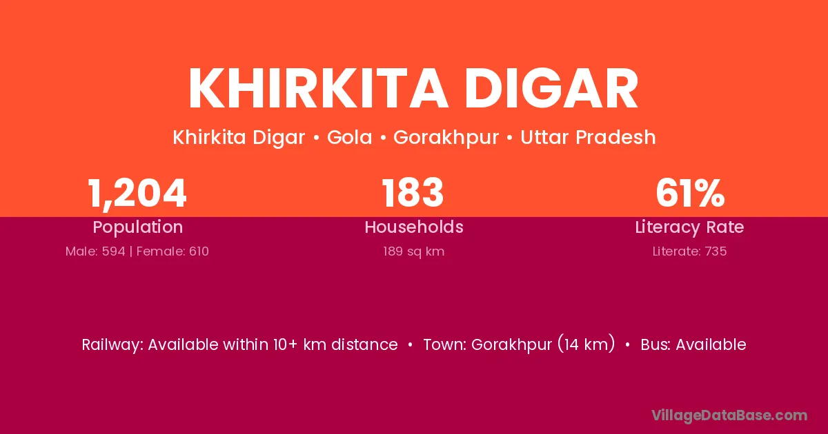 Gorakhpur (14 km) is the nearest town to Khirkita Digar village for major economic activities and is located approximately 14 km away.