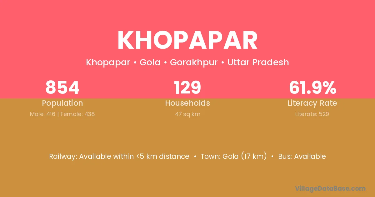 Gola (17 km) is the nearest town to Khopapar village for major economic activities and is located approximately 17 km away.