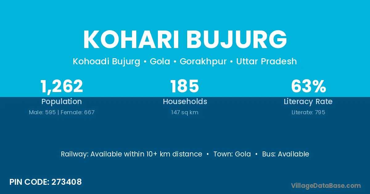 Kohari Bujurg village has a total population of 1,262 people, of which 595 are males and 667 are females.