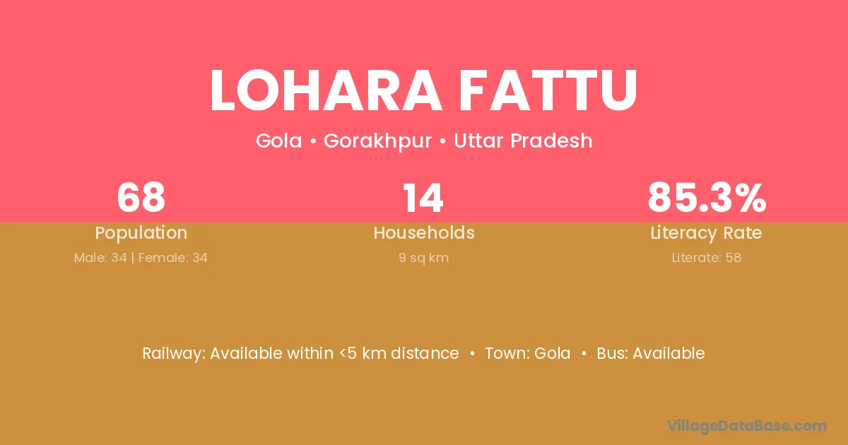 Lohara Fattu village has a total population of 68 people, of which 34 are males and 34 are females.