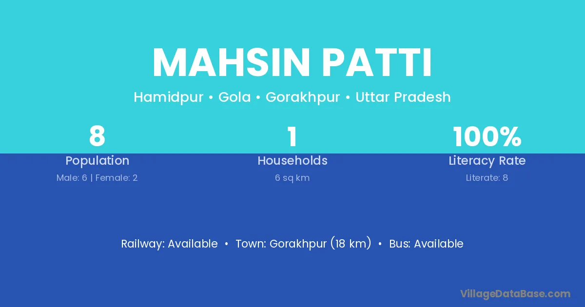 Gorakhpur (18 km) is the nearest town to Mahsin Patti village for major economic activities and is located approximately 18 km away.
