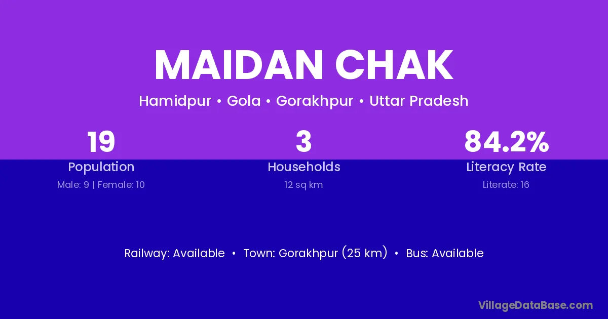 Gorakhpur (25 km) is the nearest town to Maidan Chak village for major economic activities and is located approximately 25 km away.