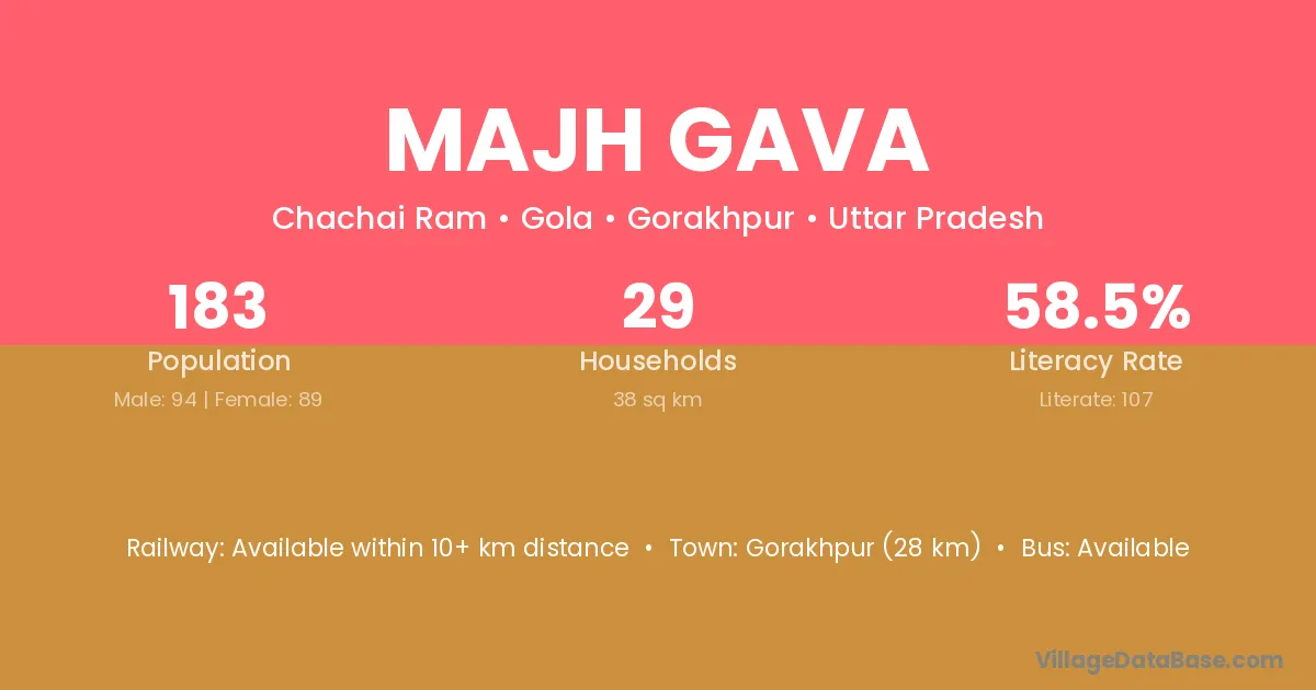 Gorakhpur (28 km) is the nearest town to Majh Gava village for major economic activities and is located approximately 28 km away.