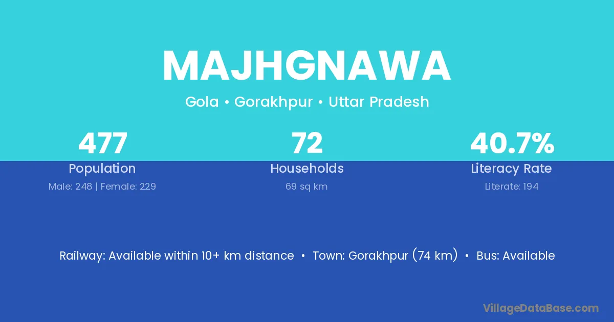 Gorakhpur (74 km) is the nearest town to Majhgnawa village for major economic activities and is located approximately 74 km away.