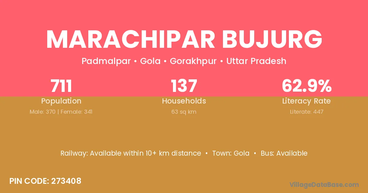 Marachipar Bujurg village has a total population of 711 people, of which 370 are males and 341 are females.