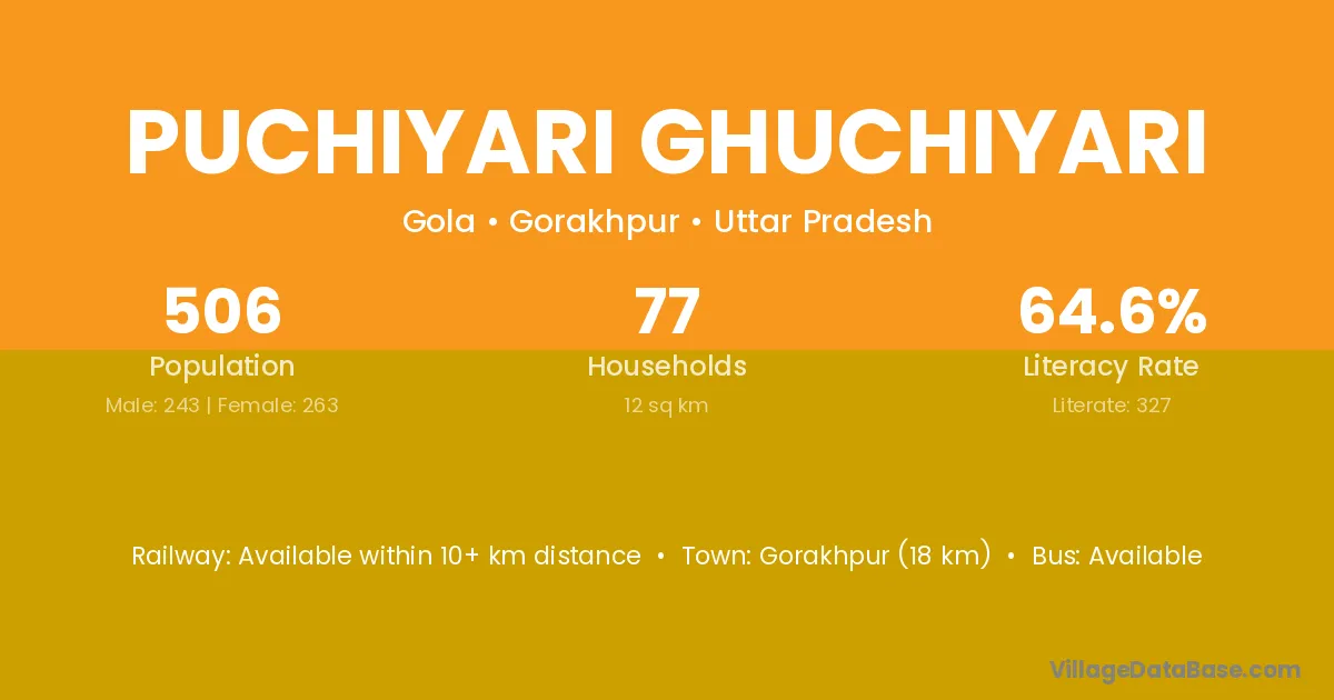 Puchiyari Ghuchiyari village has a total population of 506 people, of which 243 are males and 263 are females.