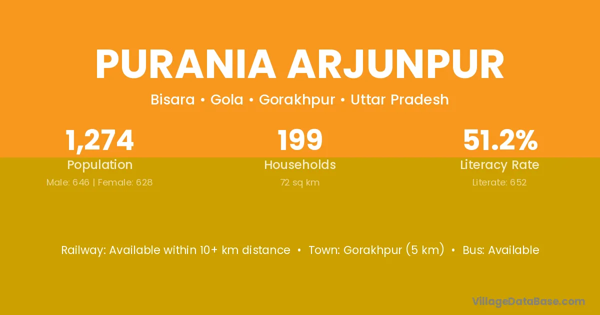 Gorakhpur (5 km) is the nearest town to Purania Arjunpur village for major economic activities and is located approximately 5 km away.