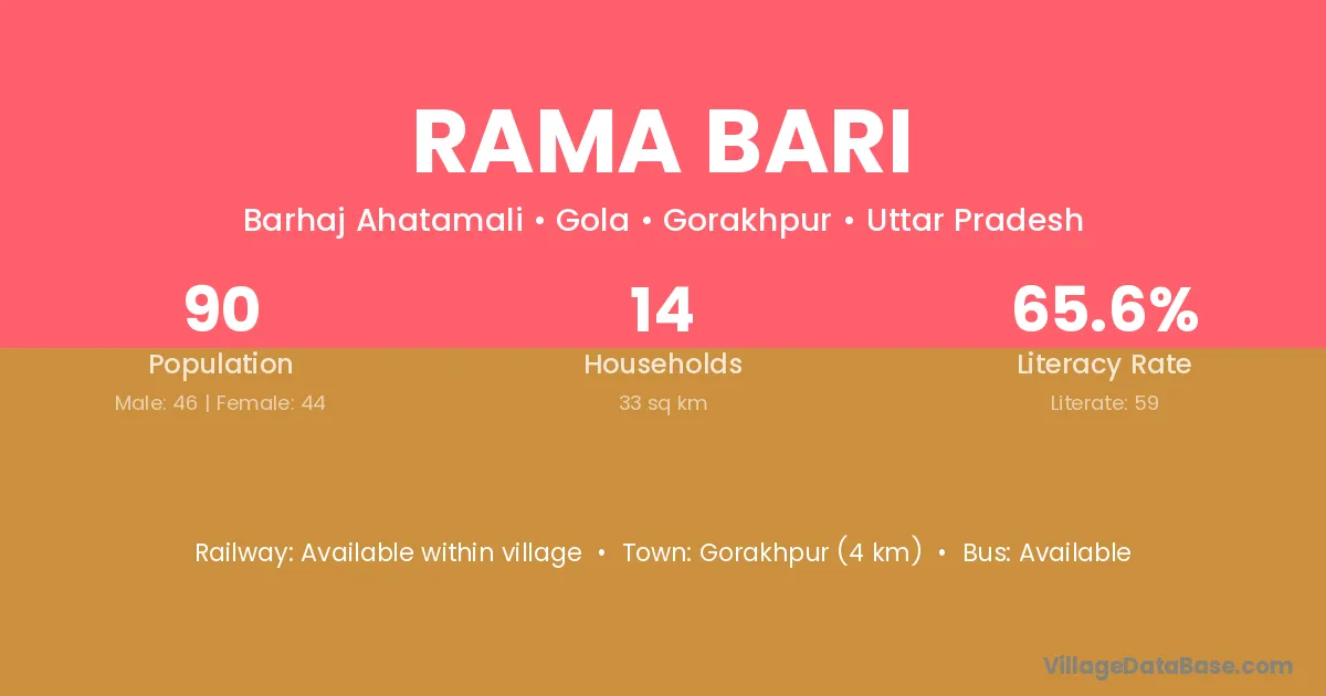 Rama Bari village has a total population of 90 people, of which 46 are males and 44 are females.