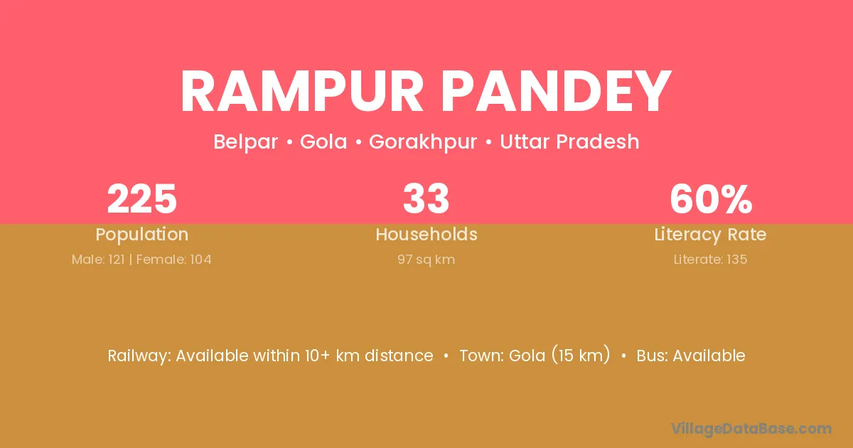 Rampur Pandey village has a total population of 225 people, of which 121 are males and 104 are females.