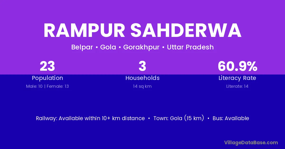 Gola (15 km) is the nearest town to Rampur Sahderwa village for major economic activities and is located approximately 15 km away.